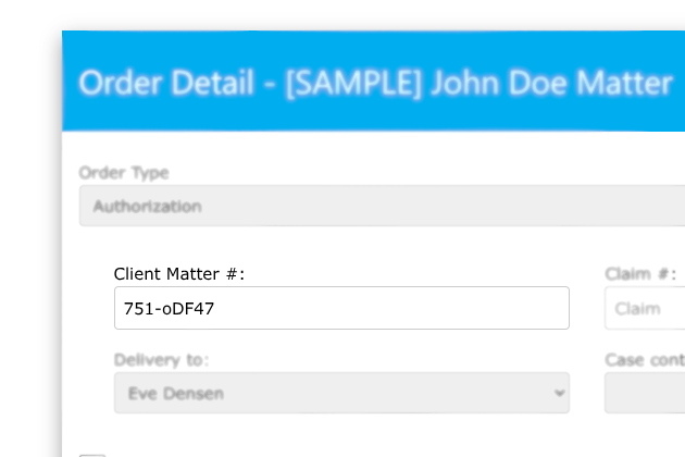 The integration automatically imports your client information from MyCase, allowing you to create new record requests quickly and without errors.